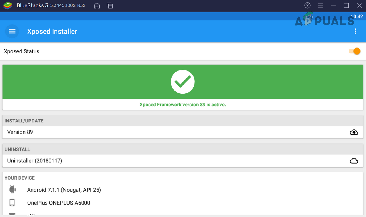 - Now make sure the Xposed Status is set to Xposed Framework is active.