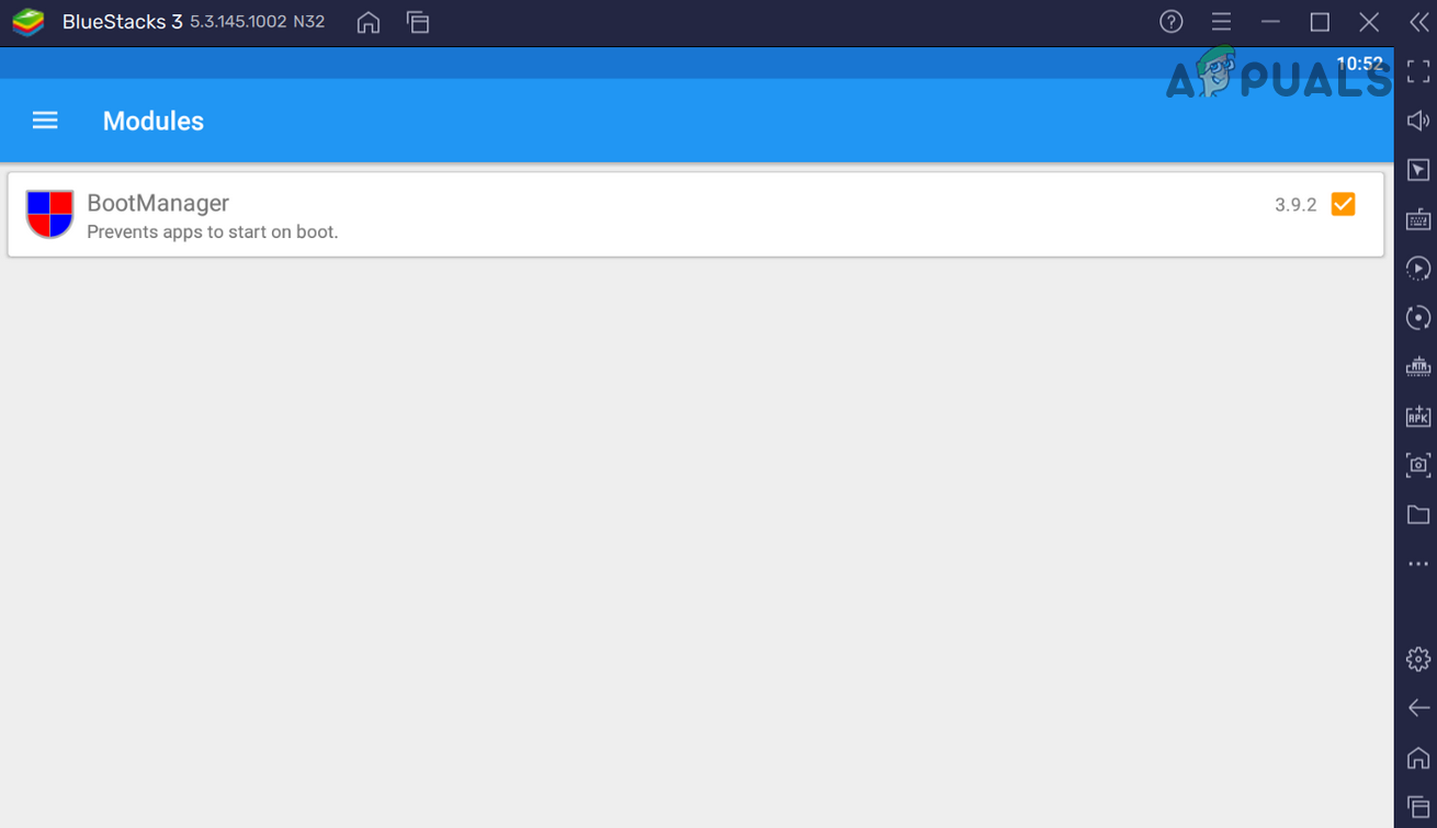 Select IPTV Smarteres Pro in BootManager to Stop it at the BlueStacks Startup - Now restart BlueStacks and the selected app will not start with BlueStacks.