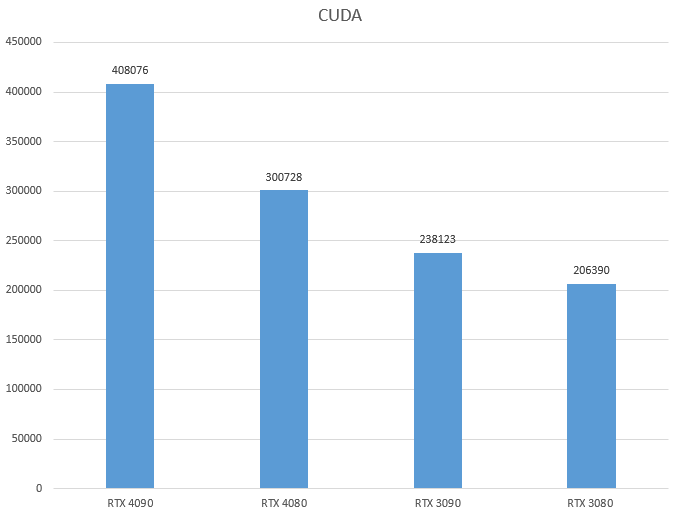 Starting off with CUDA, which is exclusive to NVIDIA GPUs, the RTX 4080 scores 300728 points. This is a nice 45% improvement as compared to the RTX 3080. Across the board, it remains ahead of the pack because the only real competitor here is the RTX 4090.
