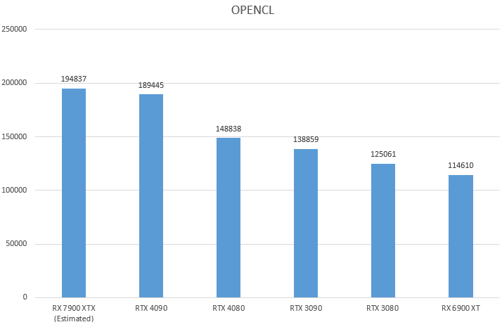 OpenCL sees the RTX 4080 manage to obtain 148838 points, marginally beating the RTX 3090. Interestingly, AMD’s 7900XTX is faster than even the RTX 4090 in this test. As for the RTX 4080, it offers a 7% improvement generation on generation against the RTX 3080. That’s kind of disappointing though the final reviews will tell the complete story.