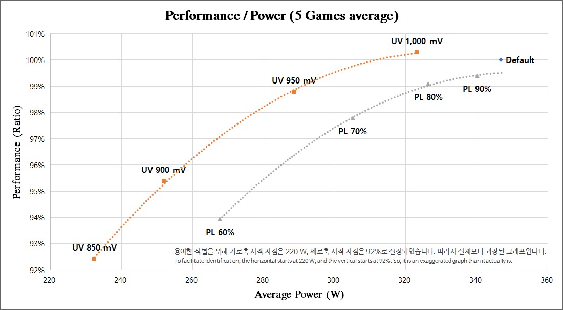 In addition, undervolting seems to be far better than merely lowering the power limits. Though, the difference does become minimal at the higher end.