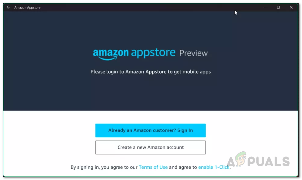 Opening up Amazon Appstore - The Amazon Appstore window will open up now. Here, click the Sign In button to login. If you do not have an account, you can also use the Create a new Amazon account button to register an account.
