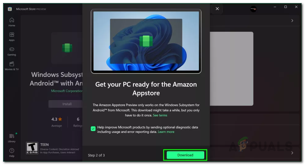 Amazon Appstore Overlay - Then, you will be prompted to download the Amazon Appstore. Click the Download button.