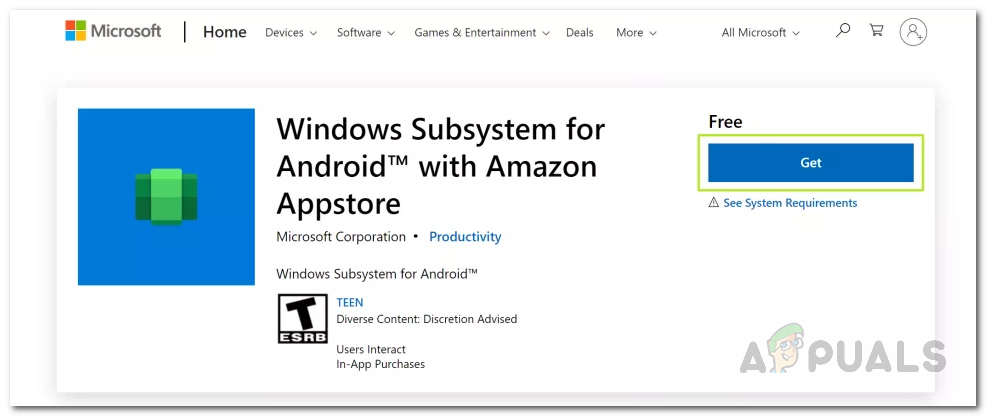 - First of all, head to the Windows Subsystem for Android web page by clicking here. Searching for this directly in the Microsoft Store may not show the result which is why we are using the web page here.