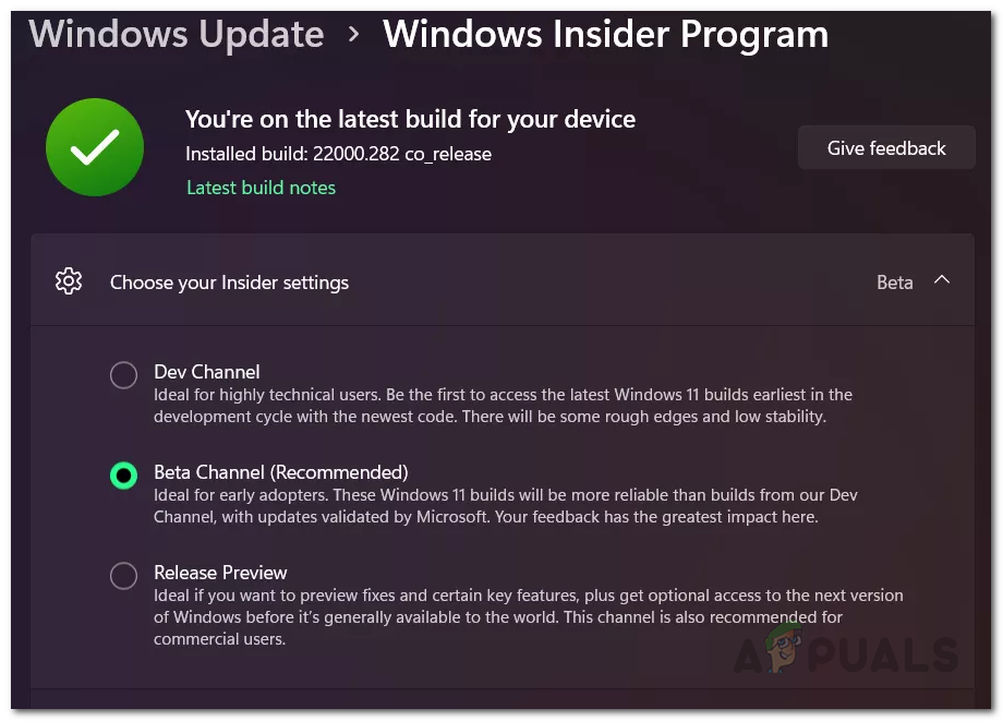 In order to switch your Insider Program channel, open up Settings and navigate to Windows Update. Then, go to Windows Insider Program and under the Choose your Insider settings menu, choose the Beta Channel.