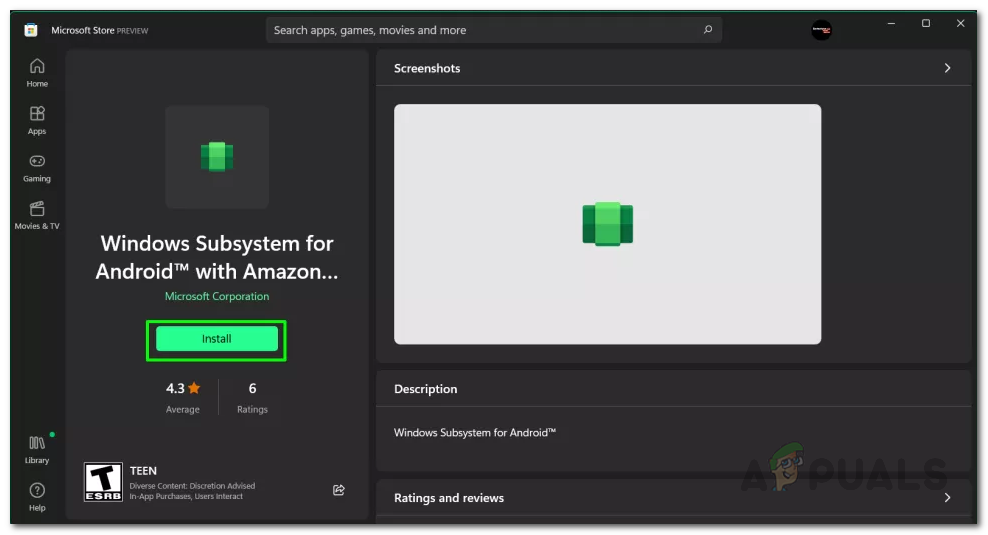 Windows Subsystem for Android on Microsoft Store - In the Microsoft Store app, click the Install button.