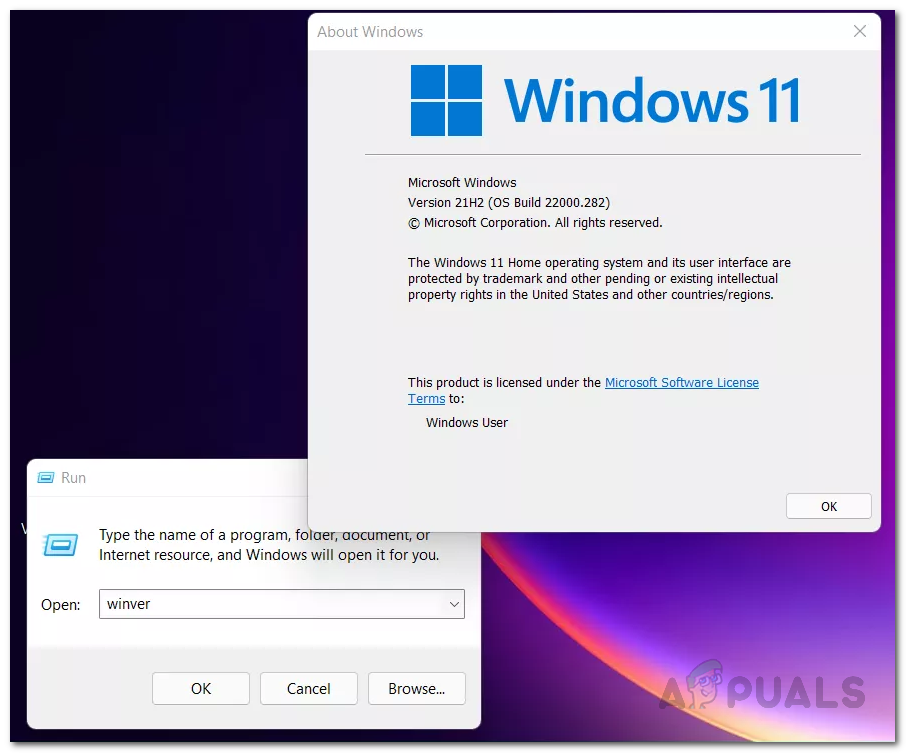 - 22000.282 or above Build — In order to run Android apps on your Windows machine, you need to be running at least the 22000.282 build of Windows 11. Anything above that is totally fine as well. You can check the build that you are running by typing winver in the Run dialog box. In case you fall short of the required build, simply go ahead and install the latest updates.