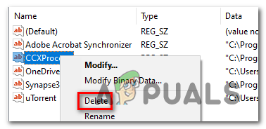 - In case you manage to find evidence of a malicious Run key, right-click on it and choose Delete from the newly appeared context menu.