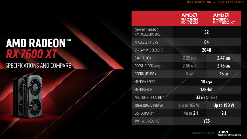 AMD Launches the Radeon RX 7600 XT 16GB at $329, Arrives January 24th