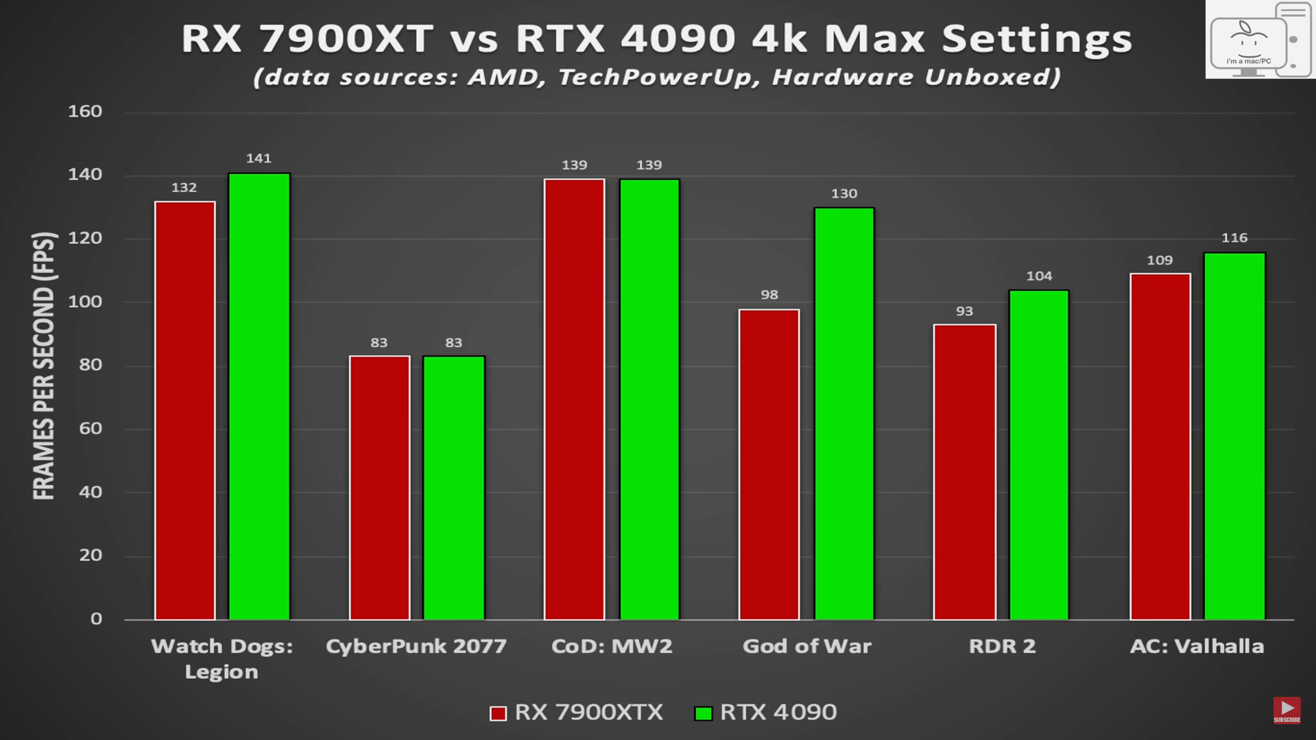 Although, across a large variety of games the difference can vary. I’m a Mac speculates that the final result would be in favor of NVIDIA with the RTX 4090 pulling ahead by at least 20%. It appears that the 7900 XTX is 10-15% faster than the RTX 4080 16GB, with the 7900 XT estimated to be equal to the 4080.