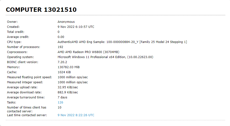 - AuthenticAMD AMD Eng Sample: 100-000000884-21_N | 96 Cores / 192 Threads | einstein11