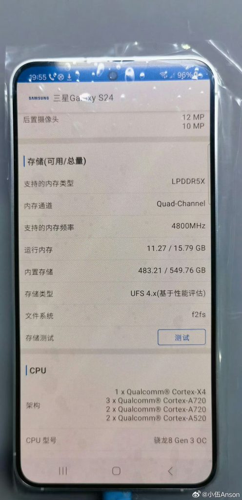 A Samsung Galaxy S24 Was Recently Spotted on Weibo Running an Upgraded 16GB LPDDR5X DRAM Memory Chip