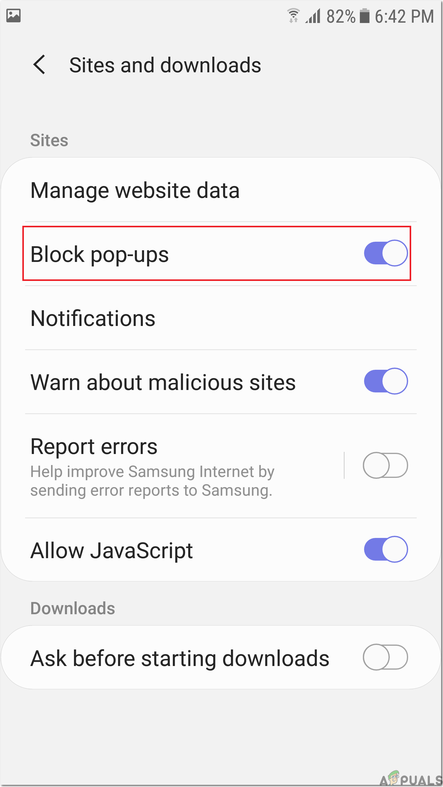 The steps for getting rid of pop-ups on the Samsung Internet browser are very similar to Google Chrome. Follow the steps below to block Pop-ups using Samsung Internet browser: