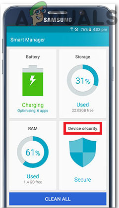 Apps - Now click on Smart Manager and afterward choose Device Security.