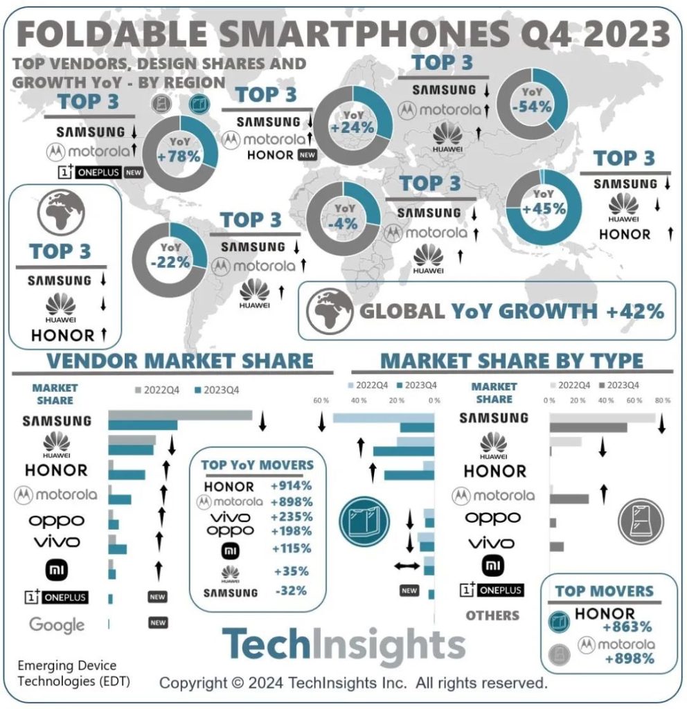These numbers from Huawei show an upward trend. The company will soon surpass 40% of the market share in the foldable segment, overtaking the leader, Samsung. Already, in the last quarter of 2023, Huawei imported a large number of Husqada and Zhaolide bearings. With that, they had also ramped up the purchase of BOE panels to improve manufacturing numbers.