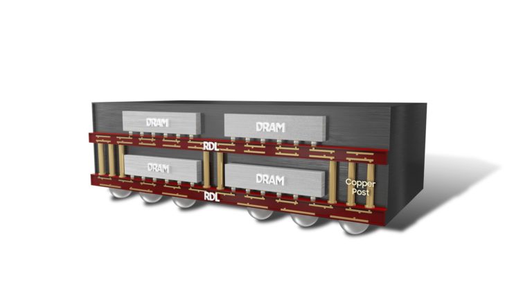 Generally, the size of a package increases as more chips are stacked. But there are physical factors that limit the maximum height of a package. What’s more, though stacking chips increases capacity, there is a trade-off in heat dissipation and performance. In order to overcome these trade-offs, we’ve applied our FOWLP technology to GDDR6W.