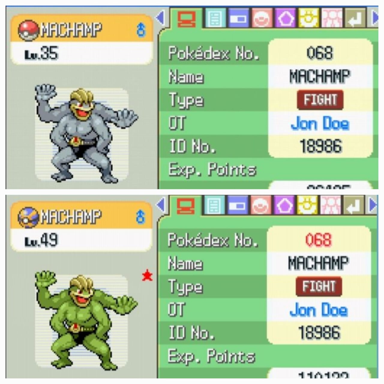 Shinies were Pokémon variants introduced in Pokémon Gold and Pokémon Silver that had a different appearance from their normal counterpart. They also had a unique glitter animation that played whenever they appeared in front of the player.