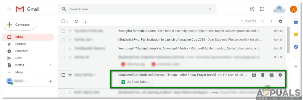 Locate and Open the Email whose Attachment you Want to Save to Google Drive - As soon as your desired email opens up, hover over the attachment that you want to save to Google Drive and click on the Save to Drive icon as highlighted in the image shown below: