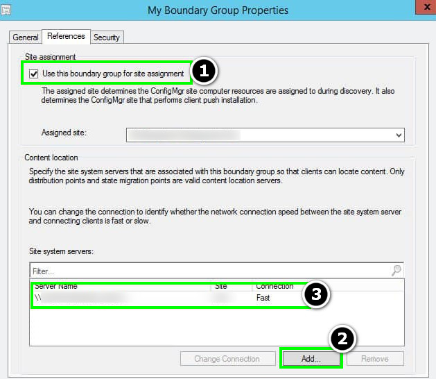 - Now head to the Reference tab of the Boundary Group and checkmark Use This Boundary Group for Site Assignment (under Site Assignment).