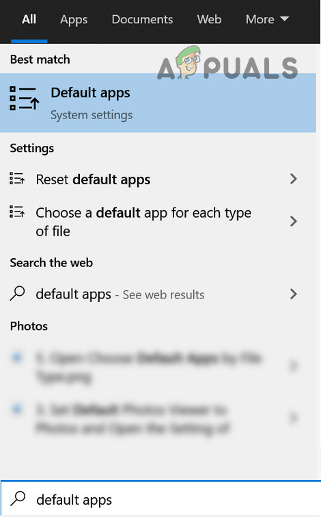 - Click Windows, type: Default Apps, and then open Default Apps.