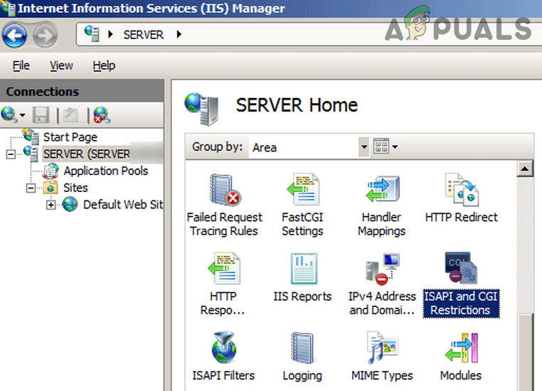 - Now select the server and open ISAPI and CGI Restrictions.