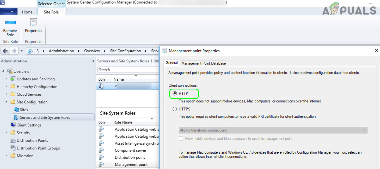 - Now select Servers and Site System Rules and in the right pane, open Management Point (in the Site System Roles section).