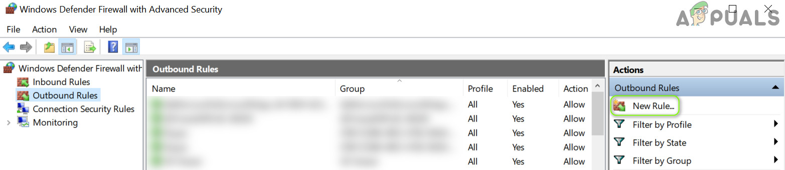 Open Windows Defender Firewall - Now, in the left pane, select Outbound Rules, and in the Action pane, click on New Rule.