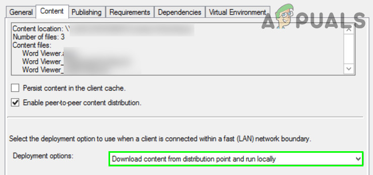 - Open the Properties of your package/application in SCCM and head to the Content tab.