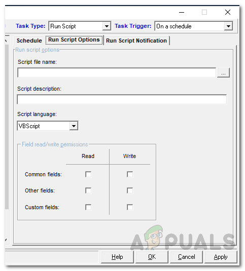 - Provide field read/write permissions and then finally, if you wish to be notified, you can do so on the Run Script Notifications tab.