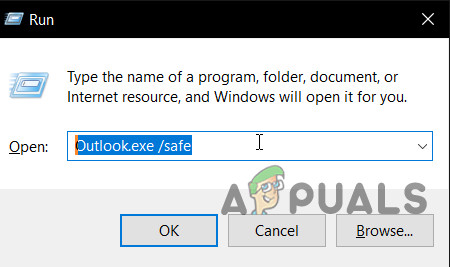 - Type Outlook.exe /safe (ensure there’s a space after Outlook and before /) and click OK. If Windows cannot locate it, use the full path to Outlook.exe.