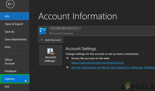 - Open Outlook in normal mode, click the File tab, and then select Options from the backstage view.