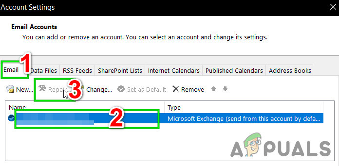 Access Account Settings - Under the Email tab, choose the user profile and click Repair.