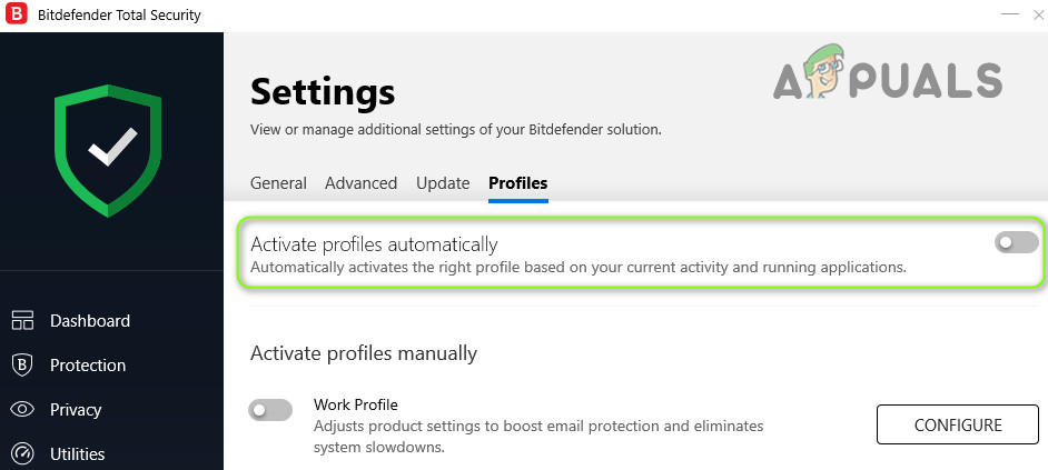 Disable Activate Profiles Automatically in the Bitdefender Settings - Then apply your changes and check if the screen dimming issue is resolved.