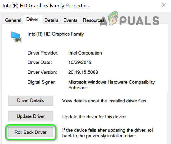 Open Properties of the Graphics Driver - Now click on the Roll Back Driver button and follow the prompts to roll back the driver.