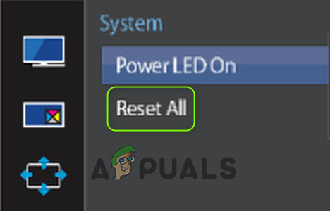 - Now select Reset All and confirm to reset the monitor.