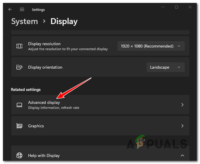 Open the Display menu - Once you’re inside the Display menu, scroll down to the Related settings section, then click on Advanced display.