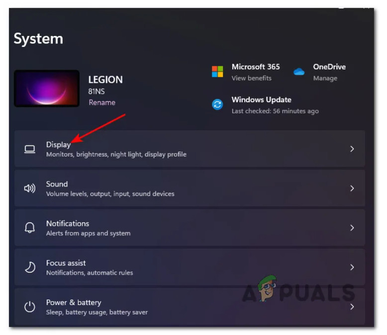 Open the Display menu - Once you’re inside the Display menu, scroll down to the left-hand side menu, then scroll down and click on Display (under Related settings).