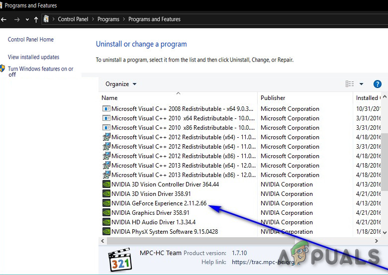 Open up Programs and Features - Inside the Programs and Features menu, scroll down through the list of installed applications and start uninstalling anything related to your GPU manufacturer (Nvidia AMD or Intel).