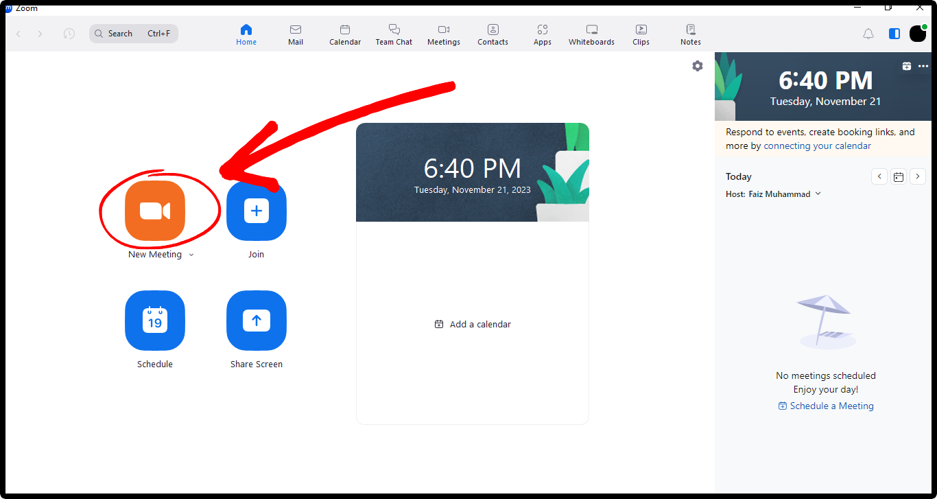 Start a new meeting or join an existing meeting - From the options available to you in the toolbar at the bottom, click on Share Screen.