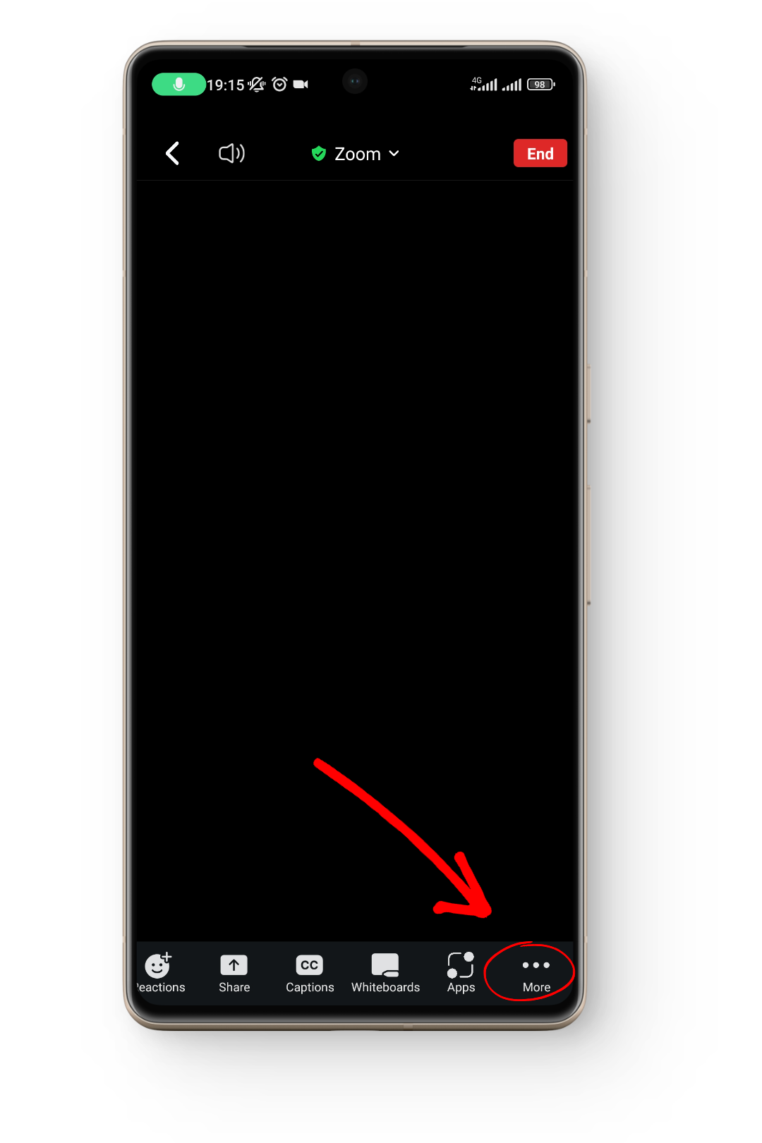 - Start a meeting and look at the toolbar at the bottom. Swipe left until you see the three-dots. Tap on them.