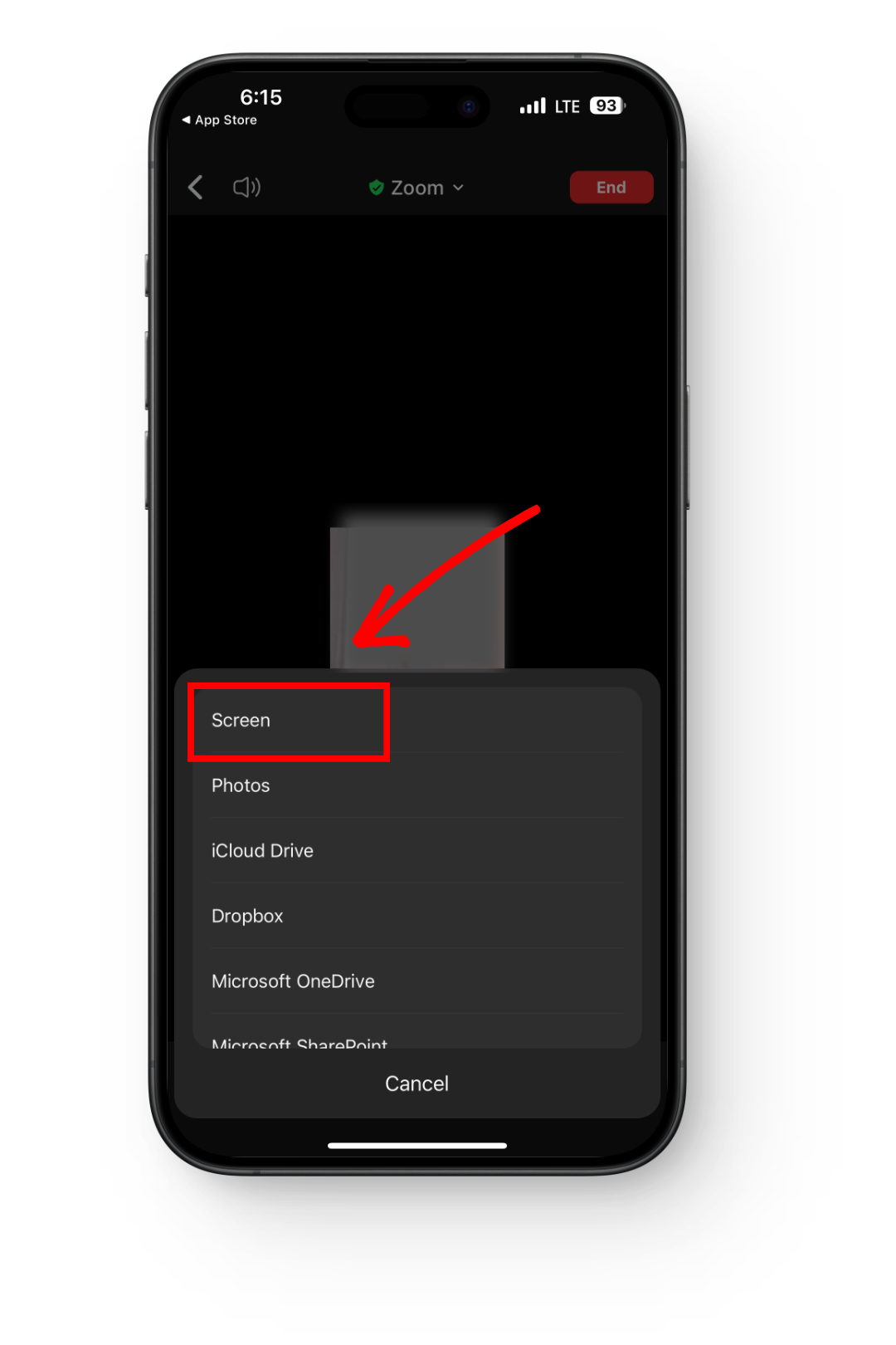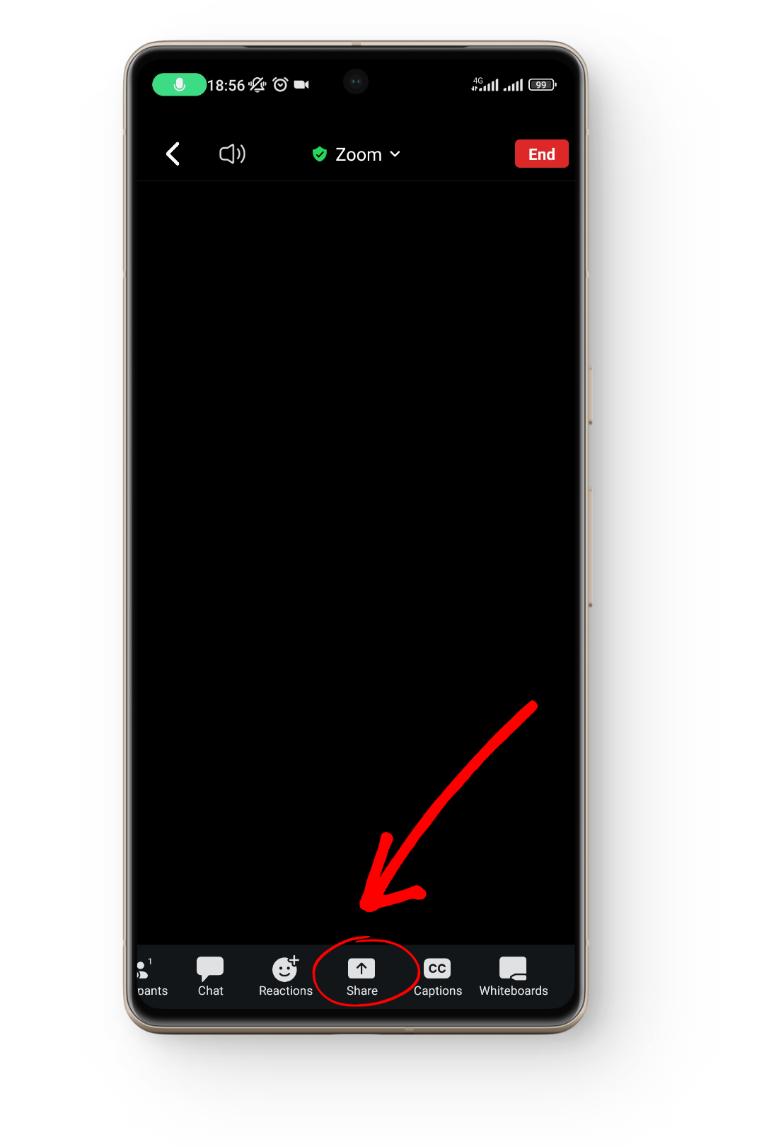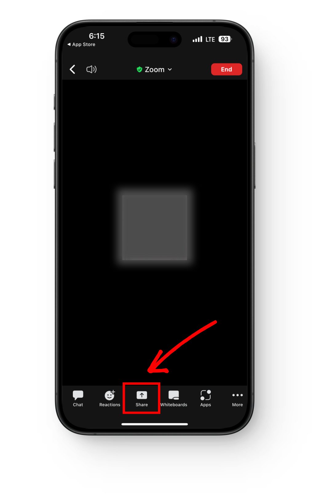 The method to enable participants to share their screen is the same on both the iPhone and Android: