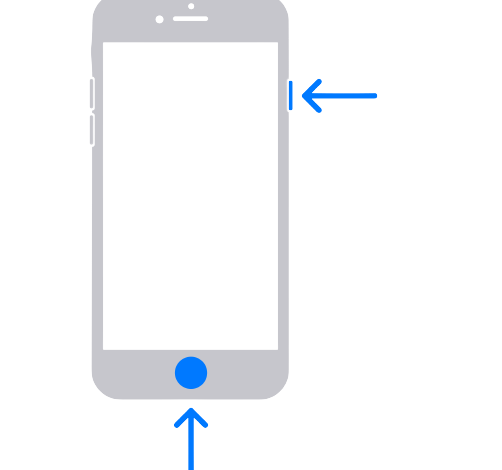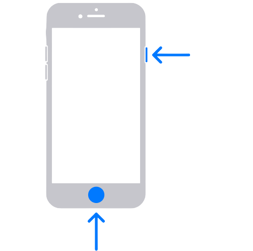 - Press the power button (on the right side) and the home button (at the bottom) at the same time, then quickly release both.