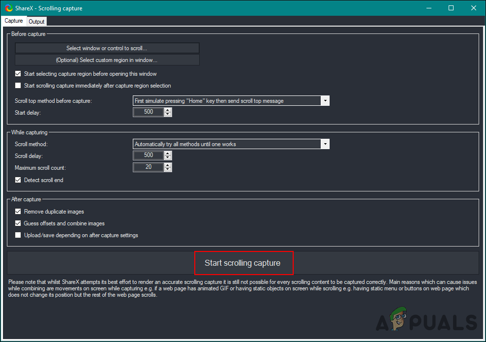 ShareX is an open-source and free screen capture tool. Unlike others, users can use this without paying any money. This tool provides many more options before taking a scrolling screenshot. It provides start and scroll delay for scrolling capture options. Once the screenshot is captured it will provide the output with mainly focusing the adjustments of size and count of images. Follow the below steps to try it out: