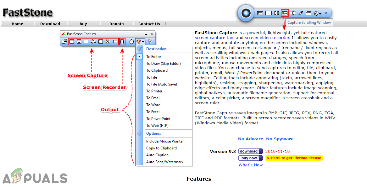 FastStone Capture is a powerful screen capture tool for Windows operating system. It provides a small panel with all the shortcuts available for all kinds of screenshots on your Windows. It also provides the scrolling screenshot feature to capture the full page on the internet. However, it is not a free application, and users can buy it for 19.99$ for a lifetime. Follow the below steps to see how it works: