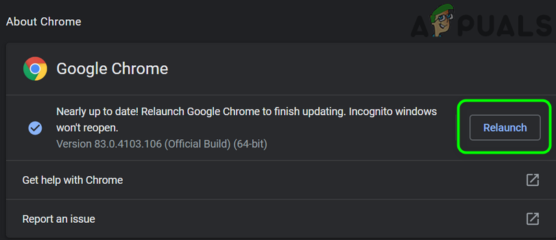 Chrome browser is updated continuously to satiate the ever-evolving technological advancements and patch the known bugs. You may encounter the error at hand if you are using an outdated version of Chrome. In this case, updating Chrome to the latest build may solve the problem.
