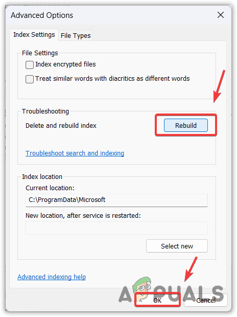Rebuilding the search indexer means that you are going to delete the entire database of Windows search and replace it with a fresh database. Rebuilding the search indexer database will eliminate fragments, reorder the index rows, and reclaim disk storage.