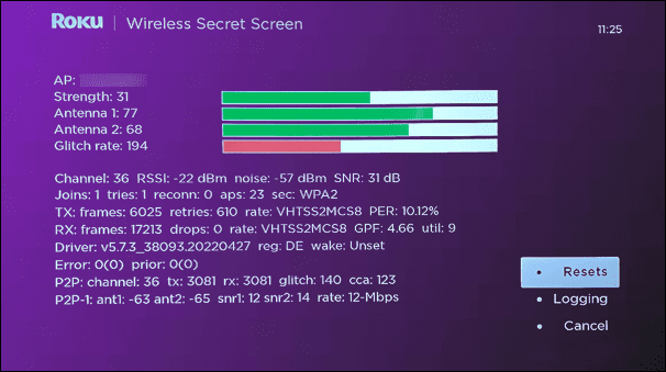 As the name indicates, Roku’s Wireless Menu covers all settings related to your wireless internet connection. You can check your Wi-Fi strength, antenna details, and the signal strength you are receiving. Additionally, you can perform an AP (access point) speed test via this menu.