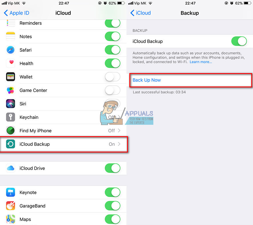 - Then press on the Backup Now button.