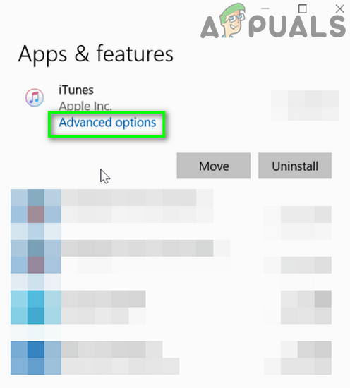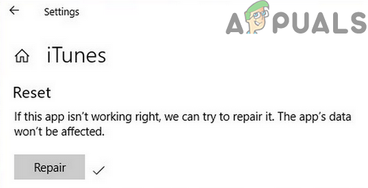 Open Advanced Options of iTunes in Windows Settings - Then scroll down and click on the Repair button.