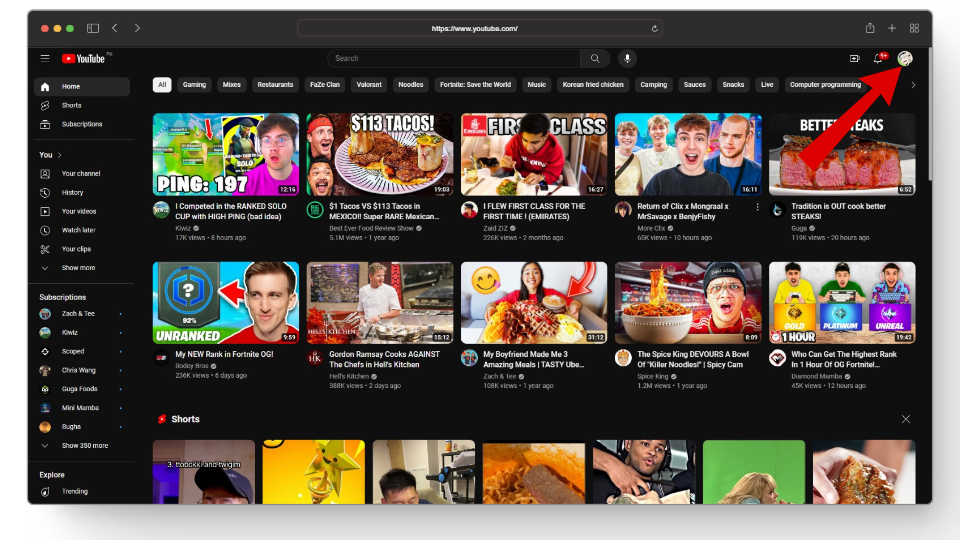 - Head to the official YouTube website and click on your profile icon in the top right.